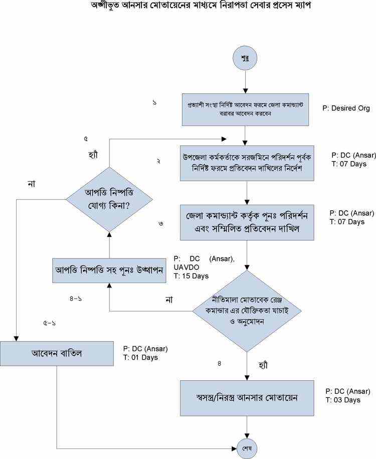 | ২ | অঙ্গীভূত আনসার মোতায়েনের মাধ্যমে নিরাপত্তা সেবার প্রসেস ম্যাপ | দেখুন | |